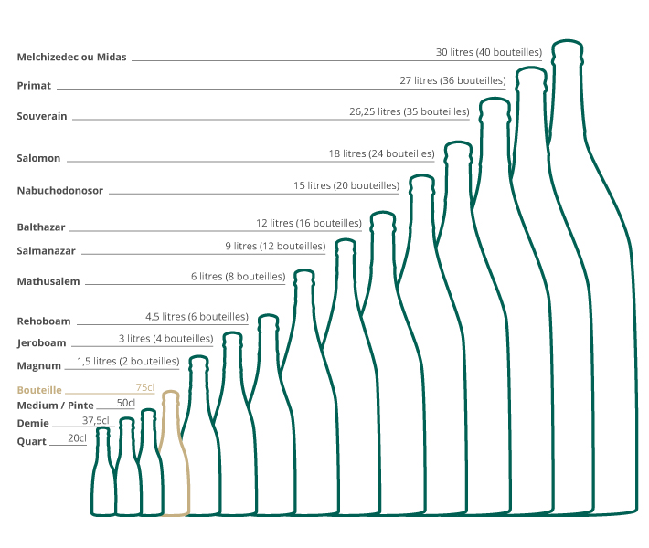 Bouteilles de champagne actuelles, du huitième au Nabuchodonosor